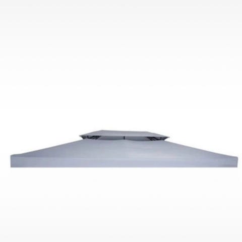 Paviljong trädgård vit tak grå metallstomme