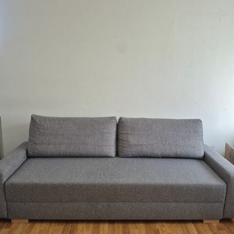 Bäddsoffa som har stått i ett gästrum.
