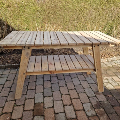 Med stabil järnkonstruktion.Som man kan lägga plåt på. Så får man ett perfekt svetsbord