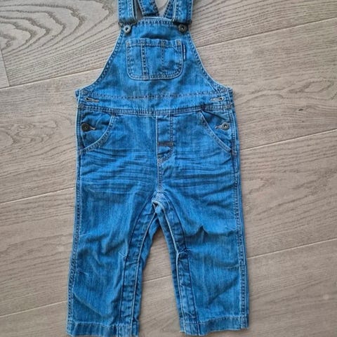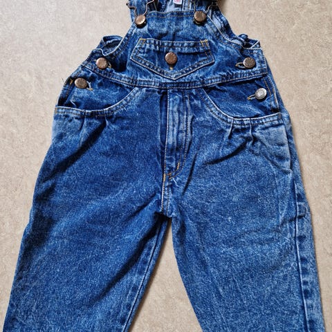 Polarn O. Pyret hängselbyxa för barn i storlek 110. Modellen är unisex och tillverkad i blå bomull. Byxan har justerbara axelband, knäppning i sidorna samt ficka framtill på bröstet. Passar vardagsbruk och lek.