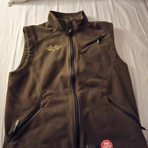 Kamouflage väst med flera fickor framtill och en större ficka baktill. Västen har dragkedja framtill och olika typer av fickor med lock och knappar för förvaring av mindre föremål. Passar exempelvis för friluftsliv, fiske eller andra utomhusaktiviteter där många fickor är praktiska.