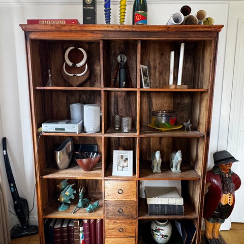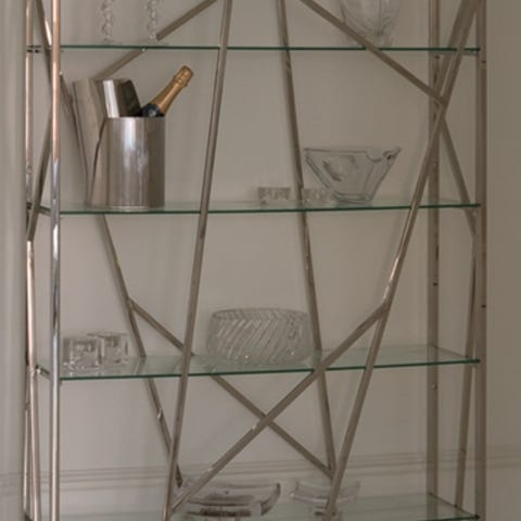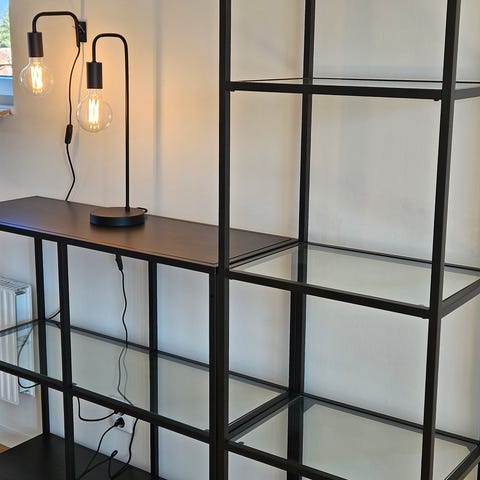 Fin hylla för visning av prylar kläder mm. Smidig att monteras frakta och förvara. Finnes I Bromma.