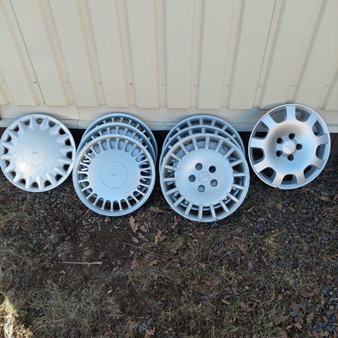 Saab 9-5 NG fälgar 17 tum i bra skick. Dåliga däck.