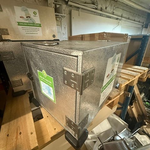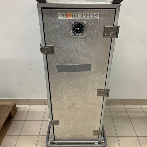 Rymmer 720liter. Kan användas både som kyl och frys. Denna har varit monterad i vår Peugeot Partner. Dock var jag tvungen att ta bort lastförskjutninsskyddet. Vi har transporterat glass i denna. Den håller kyla ner till -24 grader. Den kan användas fristående eller inkopplad i bil. Finns sats att montera i bilen för laddning/kylning vid stillastående och för kylning under färd.