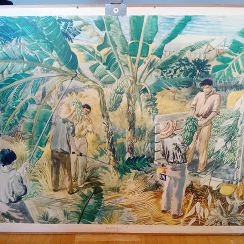 Äldre skolplansch, vulkan mm