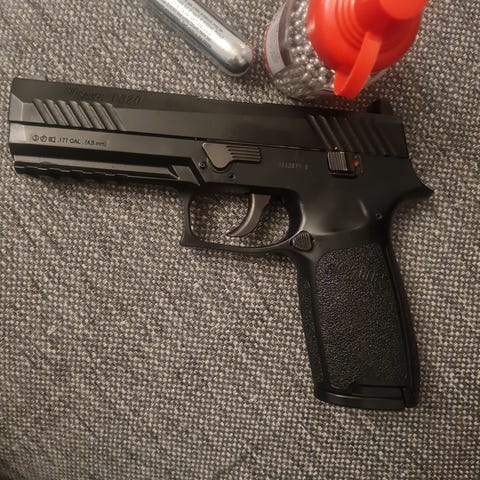 Sig P320 rx i fint skick. Jag är andra ägaren och den har totalt gått cirka 5000 smäll.