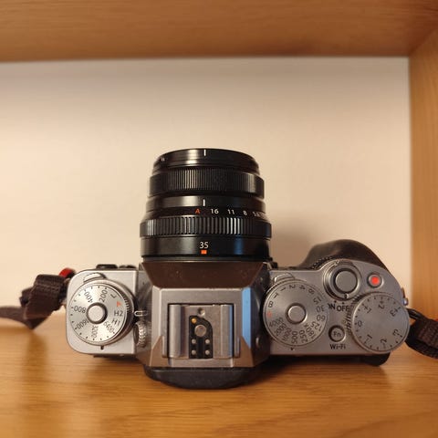 Fujifilm X-t2 med ett objektiv, batteri och laddare. Allt fungerar fint och producerar mycket bra bilder. Men det finns ett men.