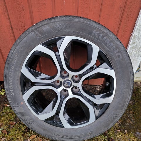 Säljer 4st Reanult Megane lättmetallfälgar som är hela och fina med bra sommardäck som har 5 mm kvar, Nokian Nordman Tyres 2025/55/16