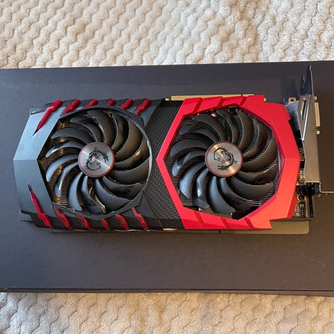 Säljer ett Msi Gaming X GTX 1060 6 GB grafikort. Fungerar bra det enda felet är att en av portarna på grafikkortet inte fungerar kommer inte ihåg vilken tror det är en av display portarna.