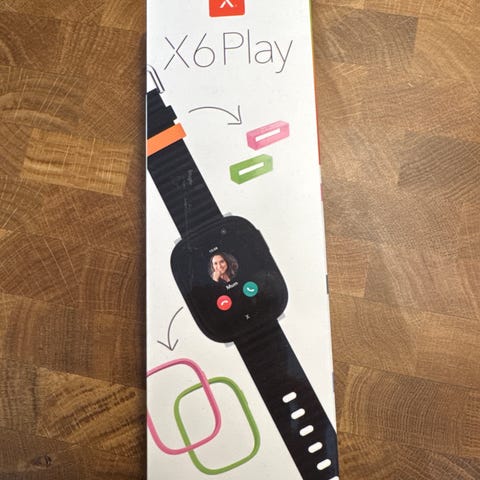 Xplora X6 Play smartklocka unisex. Modellen på bilderna visar två klockor med rektangulär pekskärm och flera utbytbara armband i olika färger, bland annat svart, blått och rosa. I paketet ingår laddare och tillbehör som färgade detaljer till armbanden. Klockan är avsedd för unisex-användning och kan bäras av både barn och vuxna beroende på handledsstorlek. Lämplig som vardagsklocka med smarta funktioner enligt Xploras specifikationer för X6 Play-modellen.