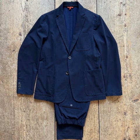 Zara kostym för herr i blå färg, storlek . Tvådelad kostym med kavaj och byxa i bomullsmaterial. Kavajen har enkelknäppning och bröstficka, byxan är rak med pressveck. Passar för exempelvis arbete, högtider eller andra mer formella tillfällen.