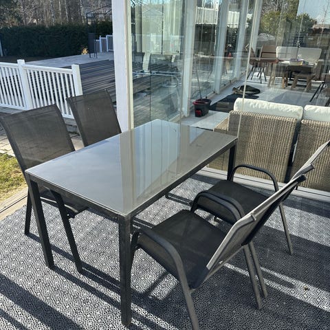 Matgrupp utomhus glasbord med 6 stolar svart