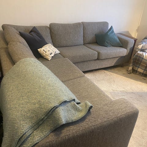 Säljer en stor och mycket bekväm hörnsoffa i fint skick. Perfekt för vardagsrum där man vill ha gott om plats att sitta eller ligga och koppla av.
