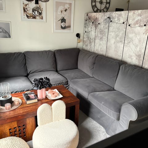 Soffan är i bra skick och mycket skön att sitta i. Perfekt för filmkvällar eller avkoppling.