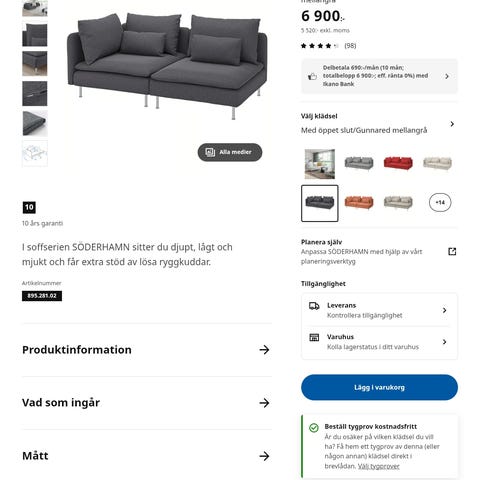 • Enkel att förnya: Klädseln till Söderhamn säljs fortfarande på IKEA, så det går enkelt att köpa lösa reservdelsfodral om man vill ha den i nyskick.