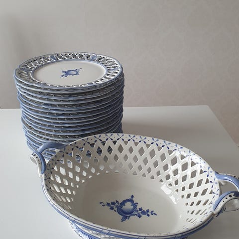Fat och skål/fat från Royal Copenhagen, Blå vifte. Mycket fint skick, inga nagg eller skador.