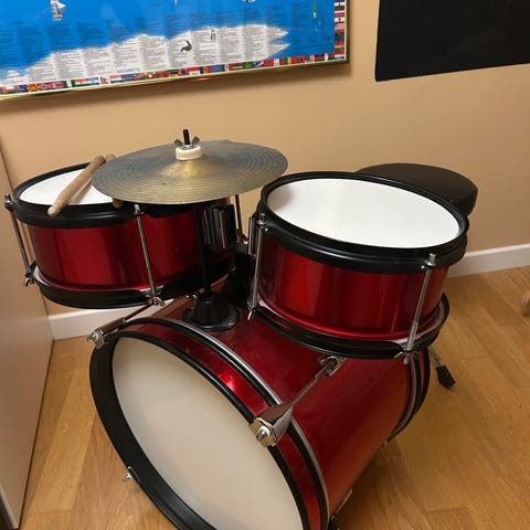 Trumset i liten storlek. För barn och gatumusikanter.