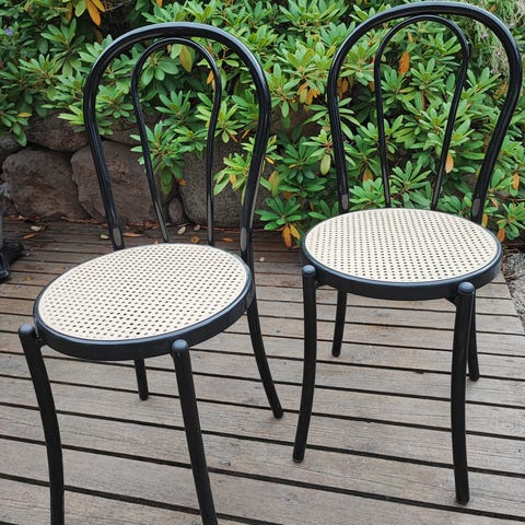 Säljer 6 st stolar med tillhörande bord. Stolens material är i aluminium och konstrotting. Bra skick på stolarna med enstaka defekter. Nypris 3000kr för 2st. Inköpta på Bauhaus. Märke Sunfun, modell Ellenor.