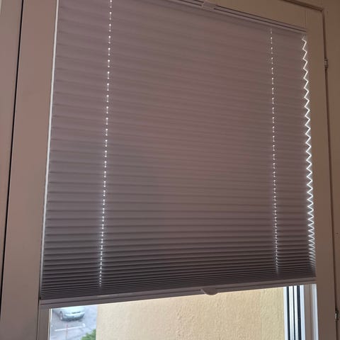 Plisségardin ljusfiltrerande dubbel, tre stycken.