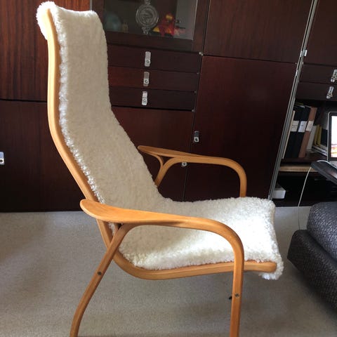 Yngve Ekström Lamino fåtölj från Swedese – omklädd i exklusivt svart fårskinn