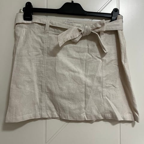 Säljer en stilren linnekostym från POUR i ljus beige färg – med både byxor och matchande shorts. Perfekt för både svalare och varmare dagar!