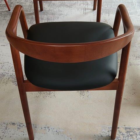 2 st stolar i trä med klädsel av svart vinyl/konstläder. Retro ca 50-60 tal.