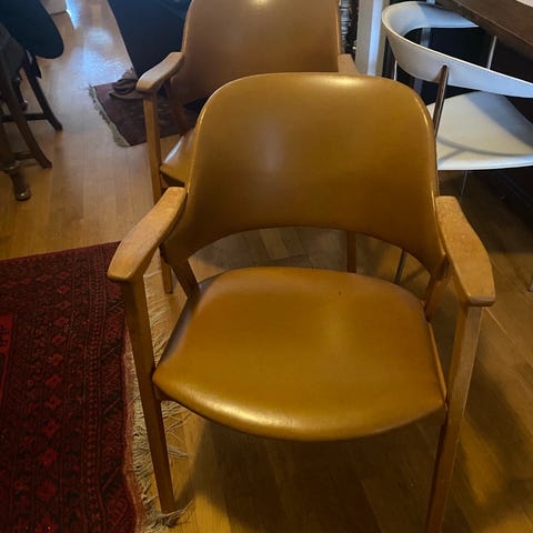 2 stolar med armstöd - Retro - Trä/konstläder - Pris för båda