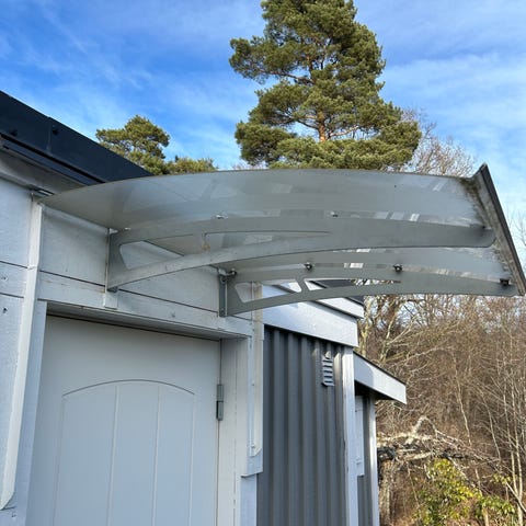 En st. Kanalplast till altantak mått 4000x1200x16 mm Med skena och täck lock . Oanvänt. Willab Garden