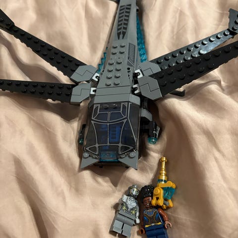 Säljer två maffiga skeppet Royal Talon Fighter från den första Black Panther-filmen. Ett riktigt snyggt utställningsobjekt med öppningsbar cockpit, fängelsedel i baksätet och rörliga vingar.