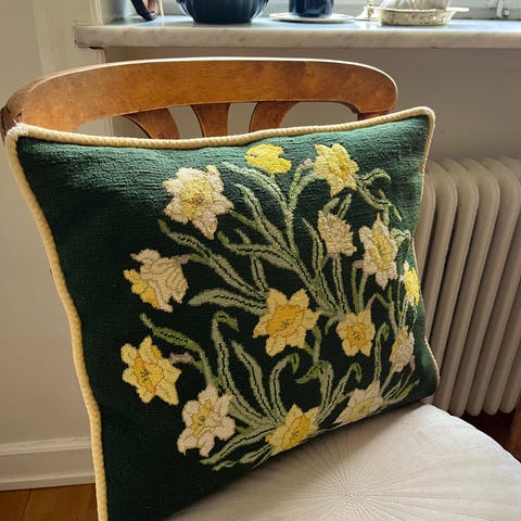 Stor härlig ullfilt i fin grön och naturvit färg med motiv av böljande moln och måsar.