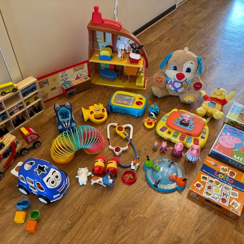 Leksakerna är rena och hela, köpta av oss farföräldrar.