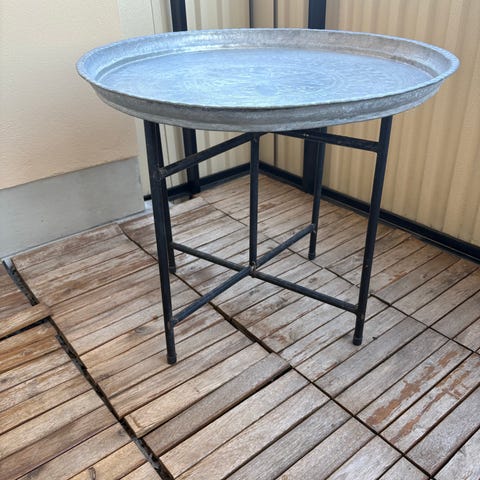 Runt metallbord utebord, färg gröngrå
