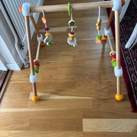 Babygym från Ikea. Använd under några månader så är i nyskick. Enkelt att ta av de leksaker som följer med och hänga på egna för att göra det lite roligare om man vill.