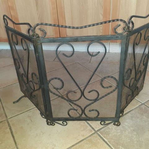 Gnistskydd i svart metall 2 st 59,5x40,5 cm Gnistskyddet består av två rektangulära sektioner med finmaskigt nät och stabila fötter för placering framför öppen spis eller kamin.