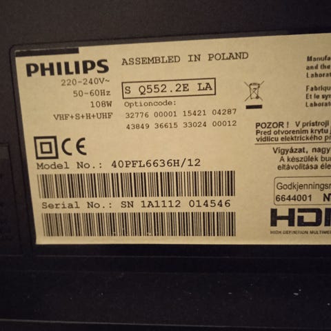 Philips tv. Platt tv-apparat. Passar för vardagsrum eller sovrum för tv-tittande och anslutning av externa enheter via tillgängliga ingångar. 42 tum. Kostade 16.000 kr år 2007.