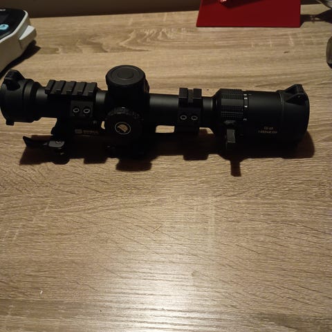 Discoveryopt LHD 1-6x24. Helt nytt. Säljes då det aldrig kom till användning. Otrolig optik för priset. Belyst med fiber-punkt (som en rödpunkt). Riktmedel i andra fokalplanet. 34mm tub.