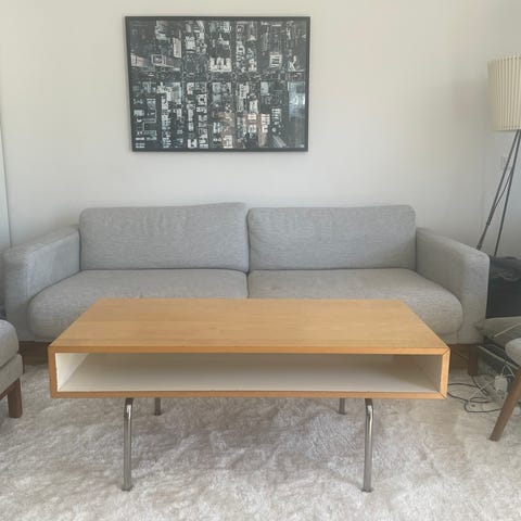 IKEA PS soffbord designat av Thomas Eriksson (PS-kollektionen 1995). Stabilt bord med hylla under. Ovansidan har marmormönstrad dekorplast.