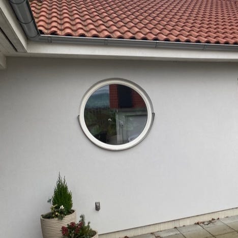 Runt glasfönster med karm