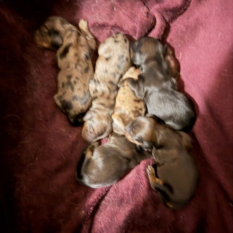 9st valpar födda den 4/3 mellan Snibor Anzi Jasmin ”Juni” SE41571/2022 och Kewonne Loke SE71216/2021.