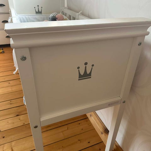 Säljer spjälsäng Troll Royal inklusive ”Lux juniorsida”.