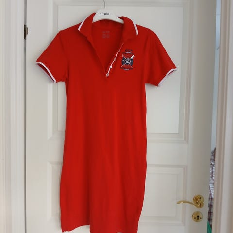 Marimekko vardagsklänning i bomull för dam i storlek S. Klänningen är flerfärgad med vågigt mönster och har rak passform. Ärmarna är trekvartslånga och halsringningen är rund. Passar som vardagsklänning och kan användas både ensam eller i lager på lager med exempelvis kofta eller jacka.