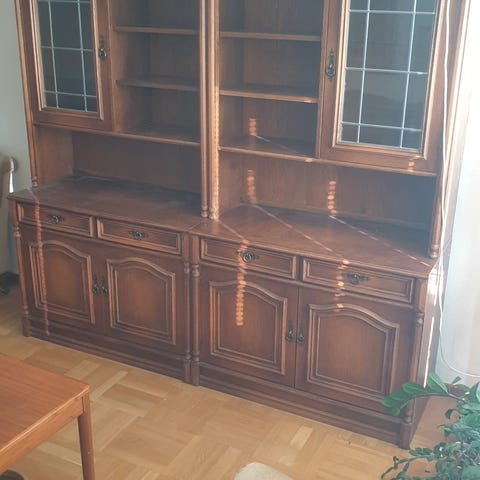 Vitrinskåp och bokhylla i trä och glas