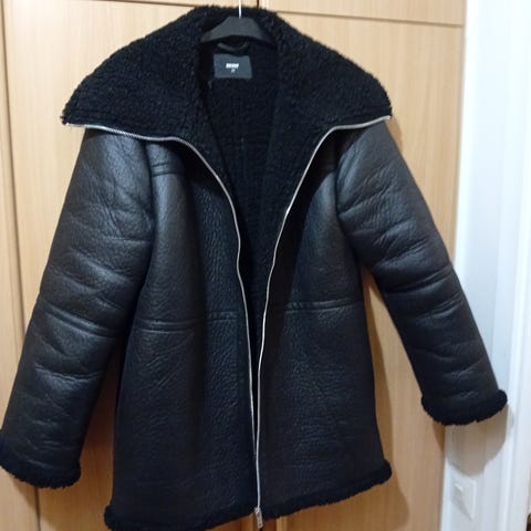 Zara jacka för dam i storlek S. Jackan är svart och tillverkad i fuskläder. Modellen har snedställd dragkedja framtill, två dragkedjefickor samt hög krage. Insidan är fodrad med mjukt material för extra komfort. Passar som ytterplagg under svalare väder.