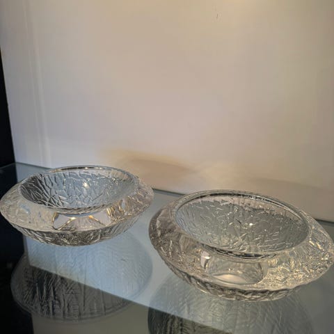 Glasskål i klarglas. Glaset är cirka 11 cm högt och har en diameter på cirka 8 cm upptill. Tjock botten ger en stabil känsla.