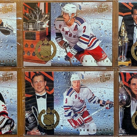 Säljer en komplett underserie om 12 kort: "All-Star Game" från Fleer Ultra 1994-95. Korten hyllar stjärnorna från matchen i Madison Square Garden 1994.Ett unikt tillfälle att köpa hela setet på en gång. Innehåller legender som Wayne Gretzky, Patrick Roy, Pavel Bure och Eric Lindros.Antal: 12 st (Komplett serie 1–12).Skick: Mycket fint samlarskick. Förvarade i skyddsplast.Frakt: Skickas säkert mellan kartongskivor.