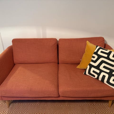 Bild på soffan innan den flyttas ut för ommålning