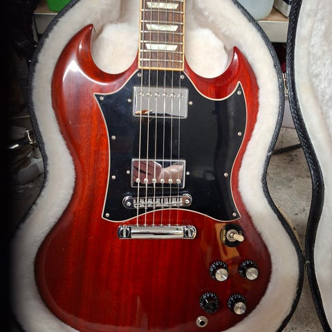 Gibson SG i fantastiskt skick säljes då den tyvärr inte spelas så mycket som den förtjänar. Kommer med orginal hardcase.