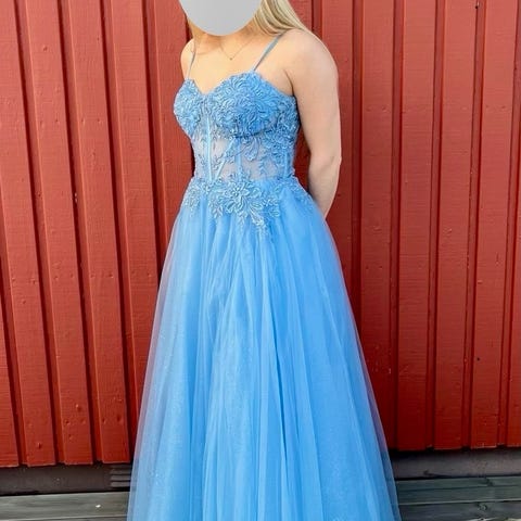 Säljer min superfina, ljusblåa balklänning från Ivory Fields / You&Me Fashion som jag köpte 2020 men som aldrig kom till användning pga Covid. Har hängt skyddad i garderoben sen dess så är endast använd när jag testat den.