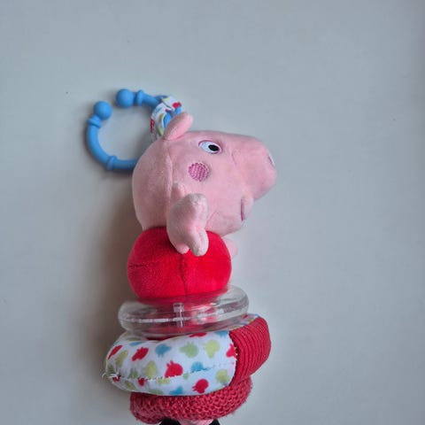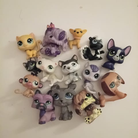 Littlest Pet Shop gosedjur i lila tyg med stora tryckta ögon och randiga detaljer på kroppen. Mjukdjur tillverkat i textilmaterial, lämpligt som leksak eller prydnad i barnrum. Tillverkare Hasbro.