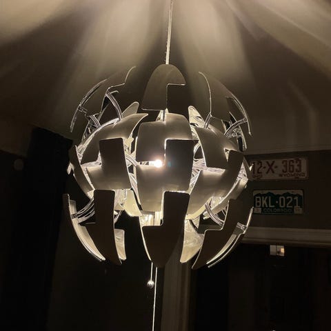 Lampan på bilden är IKEA PS 2014 taklampa.